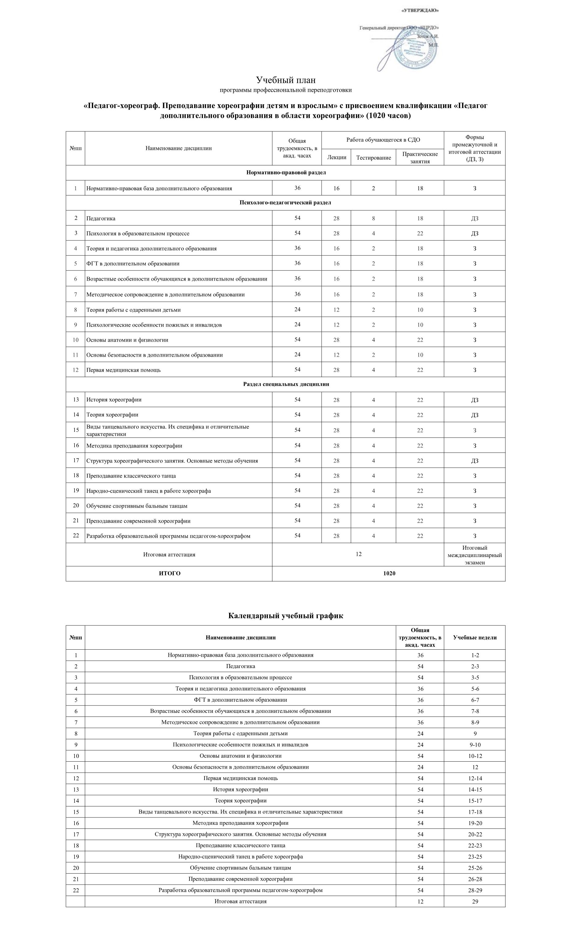 Учебный план, календарный учебный график |
